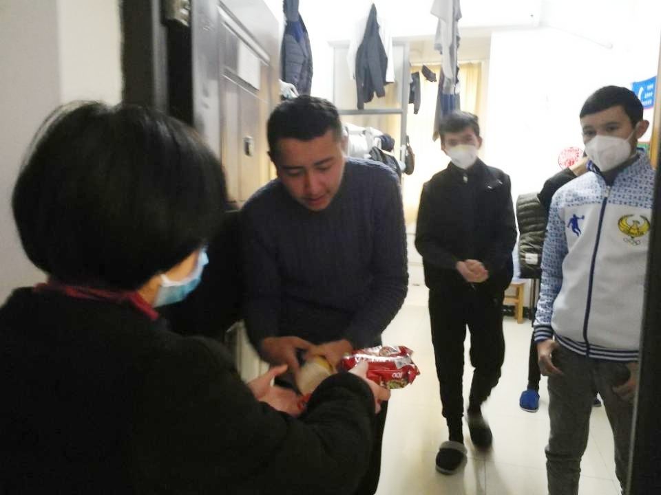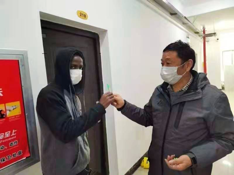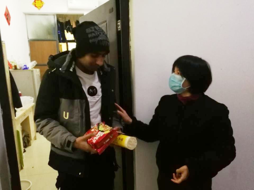 元月23号以来,学校各级领导每天安排专人来到留学生宿舍慰问学生的生活、身体、安全以及物资供应等方面情况共计15余次。