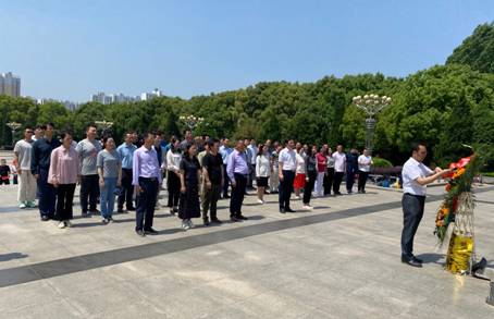 黄麻起义和鄂豫皖苏区纪念园松柏苍翠,革命烈士纪念碑庄严雄伟,纪念碑背面铭刻着一首当地几乎人人会唱的歌谣:“小小黄安,人人好汉,铜锣一响,四十八万,男将打仗,女将送饭。”怀着对革命先辈的无限怀念和崇高敬意,学院党委书记陆新代表学院在纪念碑前向革命烈士敬献花篮,全体同志向纪念碑三鞠躬,瞻仰纪念碑,深切缅怀革命先烈的丰功伟绩。全体党员在陆新的带领下,面向党旗和纪念碑,庄严宣誓,重温入党誓词。
