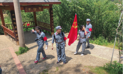 党旗领航,烈日下走在崎岖山路间,走在红军曾经战斗过的地方,大家感叹共产党人革命意志的坚定,深刻体会大别山精神的丰富内涵。(审稿 王雪梅)