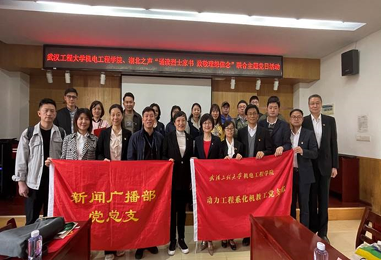 4月27日,武汉工程大学机电工程学院全国样板党支部化机教工党支部、办公室教工党支部、过控专业学生第一党支部联合湖北广播电视台湖北之声新闻采编部党支部、特别报道部党支部、政务节目部党支部开展“诵读烈士家书、致敬理想信念”联合主题党日活动。湖北之声代表团深情诵读了《赵一曼家书》,讲述了家书背后的动人故事,赵一曼同志的感人事迹深深触动了在座的每一位党员。化机教工党支部杨红教授发自肺腑感叹道:“赵一曼的家书,是一封天底下最真挚、最朴实的一个母亲临刑前给孩子的家书,充分展现了一个革命者的家国情怀”。“我们的祖国刚刚打赢了脱贫攻坚战,全面建成了小康社会,我们的祖国开启了全面建设社会主义现代化的新征程,我们的祖国正大步走在复兴的道路上!”学生党员孔维晨眼含热泪与赵一曼烈士隔空对话,汇报着祖国新时代的伟大成就,朴实的语言穿越了85年的时空,回到那个战火纷飞、硝烟弥漫的革命年代,告慰着烈士不朽的英灵。