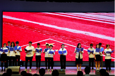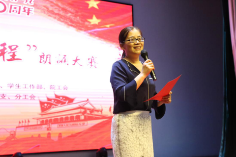 副院长欧阳琼宣布本次朗诵比赛的成绩:经过激烈的角逐,化工与材料工程学院、艺术设计学院和外语学院分别荣获前三名。