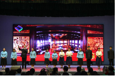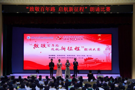 (通讯员 郭咪咪 熊雨奔)为庆祝党的百年华诞,感悟革命先辈的家国情怀,传承红色基因,启迪广大师生智慧,营造上下一心,同谋美好未来的良好氛围,2021年5月10日18:30,由邮电与信息工程学院党委组织部、党委宣传部、学生工作部、院工会主办,化工与材料工程学院党总支、分工会承办的“致敬百年路 启航新征程”主题朗诵比赛在大礼堂隆重举行。邮电与信息工程学院副院长欧阳琼,相关职能部门、二级学院负责人及师生代表共计1100余人出席观看比赛。湖北省朗诵协会会长蒋晓兮老师,学院党委组织部部长李佩君老师,武汉工程大学副教授孙雯老师,高级工程师王忠惠老师、曾德海老师,化工与材料工程学院党总支书记胡培老师受邀担任本次朗诵比赛评委。8个二级学院党总支、分工会,机关党总支、分工会及流芳校区直属党支部等10个单位参赛。