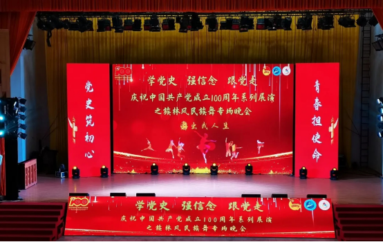 本网讯(通讯员 张钟文)为庆祝建党100周年,丰富学生的课余生活,进一步推动校园文化建设,营造良好的艺术氛围,5月7日晚,学校庆祝中国共产党成立100周年系列展演之族林风民族舞专场晚会在流芳校区大礼堂成功举行。