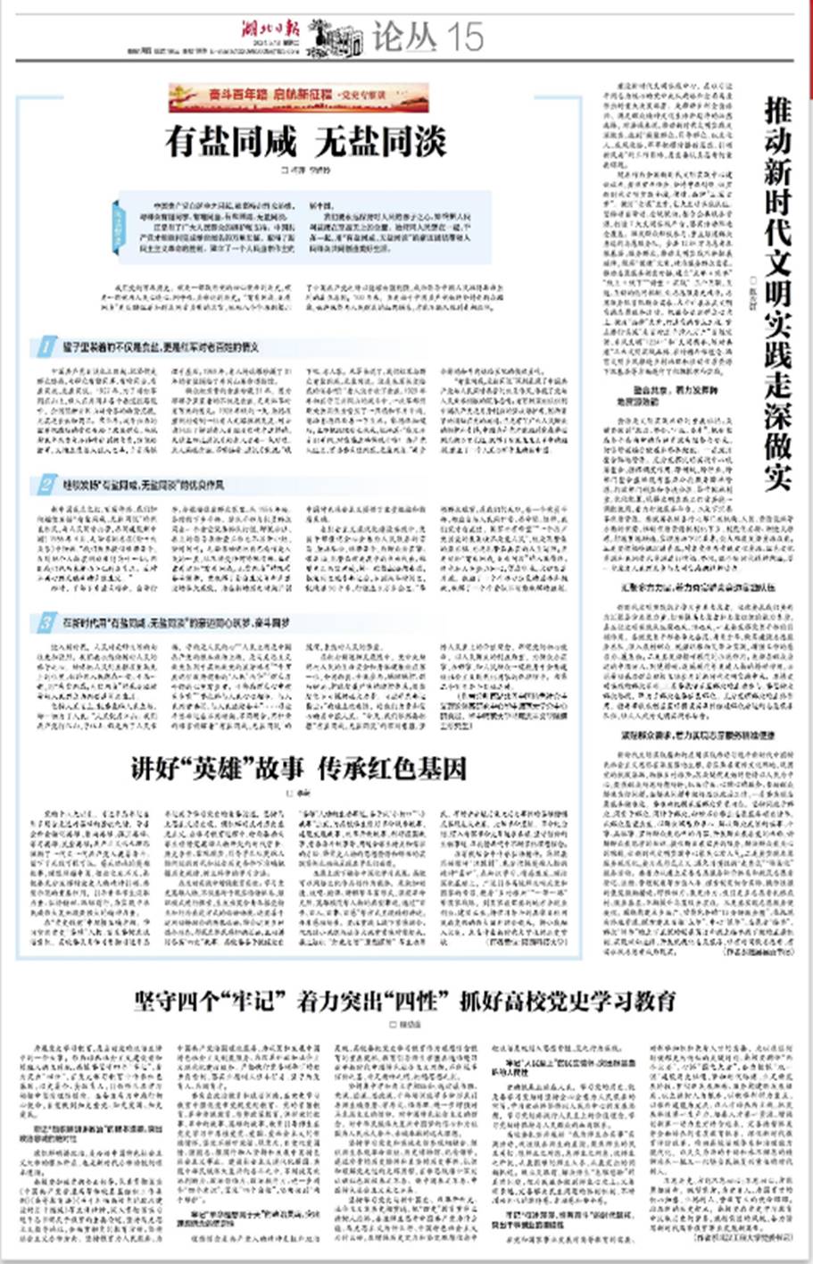 本网讯 5月18日,《湖北日报》理论版刊发校党委书记程幼金文章《坚守四个“牢记”着力突出“四性”抓好高校党史学习教育》。